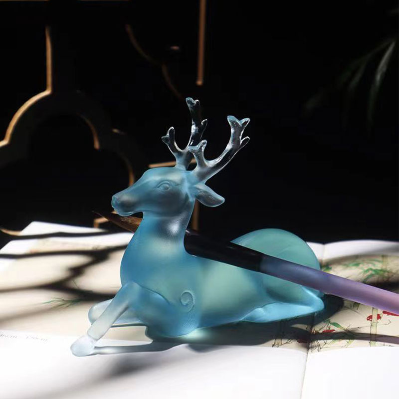 Questo portaspazzole in vetro blu a forma di cervo è un'opera d'arte inebriante. Il prodotto utilizza una fresca tonalità blu-verde, donando alle persone un senso di tranquillità ed eleganza, come se consolidasse l'agilità e la tranquillità della natura. Questo portaspazzole in vetro blu riprende l'immagine di un cervo, dal portamento elegante e dalle linee morbide. Le corna del cervo sono delicate e squisite, le curve del corpo sono naturali e morbide e ogni dettaglio è ritratto in dettaglio, mostrando le superbe abilità dell'artigiano. La trama del vetro rende il cervo realistico, come se saltasse leggermente nel secondo successivo.