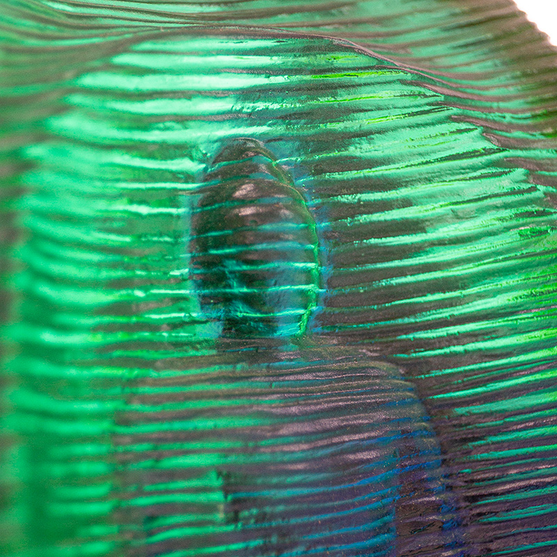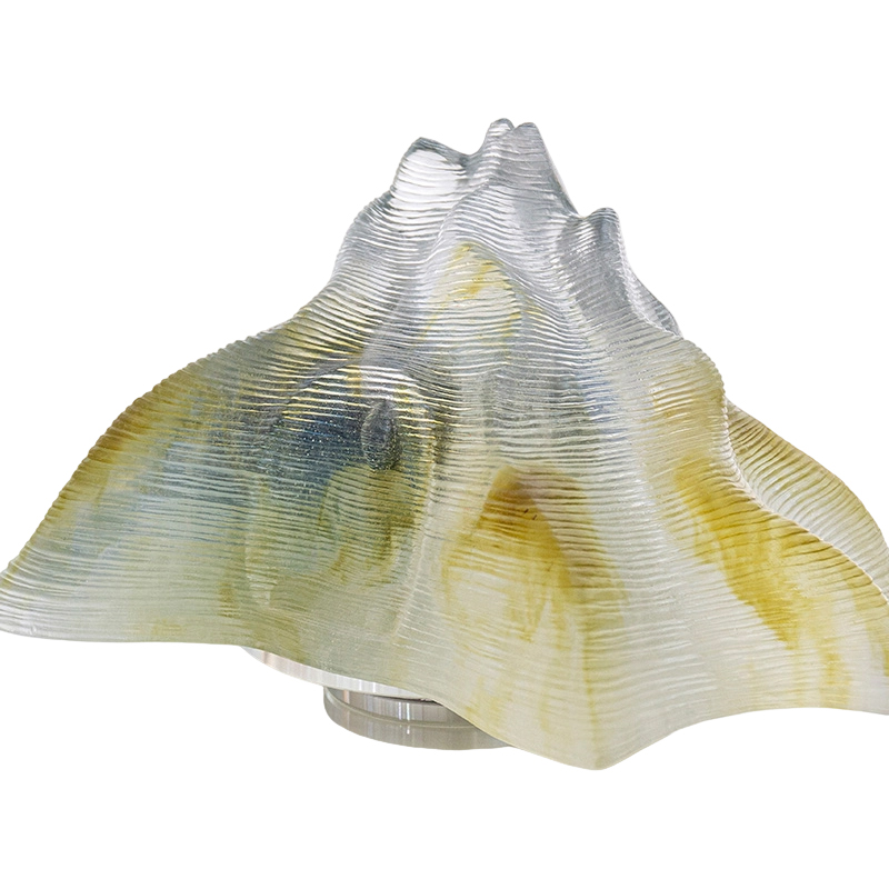 In realtà è del tutto normale che le opere d'arte in vetro contengano bolle. Ciò è dovuto all'utilizzo della tecnica della fusione a cera persa, che naturalmente comporta la presenza di bolle all'interno dei pezzi. Il modo in cui la luce si rifrange attraverso queste bolle interne mette in mostra il fascino unico del materiale del vetro. Illustra magnificamente che il vetro funge davvero da contenitore per la luce.